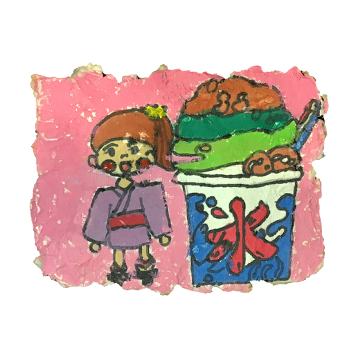 『かき氷を買ってよろこんでる女の子』